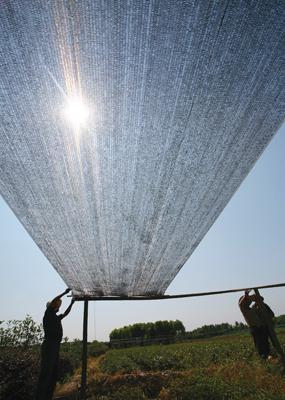 夏日炎炎似火烧,而竹马乡的花农们却一刻不得闲。昨天上午,记者在位于该乡西宅村的苗木种植园内看到,花农们正顶着烈日,忙着给红叶石楠等苗木安装遮阳网,以降低日晒温度,利于苗木生长。