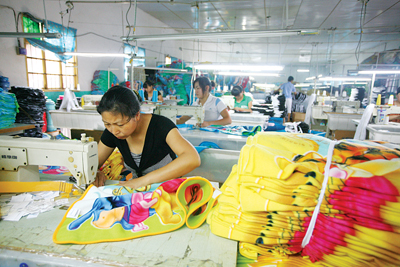 昨日,记者在位于罗店镇工业功能区内的浙江金华博雅家纺有限公司看到,为了使订单顺利交付,员工们正在生产车间内忙碌着。据了解,该公司是一家生产家庭用品的专业公司,主要生产床上用品、坐垫、窗帘、地巾、围裙、圣诞用品等100多个品种,产品销往日本、欧美等国家。今年上半年,随着外贸形式趋稳转好,公司的订单量比同期增长了30%左右。为了让员工们工作得更舒适,该公司先后投入近3万元,在各车间安装了十多个冷却水循环机,确保工作环境的凉爽。