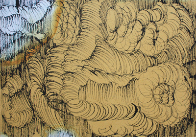 陈梦兮自称,在美国学画期间,她从一首印度诗上,获得了创作圆线派的灵感。她向我们复述了那首印度诗的大意:时间像莲花的种子,种子落在土里,土里长出萌芽,萌芽长出荷苞,荷苞在开花,开花结莲蓬,莲蓬结种子。她反复地使用圆线来表达星体、天荷、天马、天鹅等超越日常生活的意象。“一颗种子无法在空气中生长,必须要有土壤。”她说。学院生涯,各种乏味的练习,恰恰成了她刚刚萌发出来的种子的培养基。