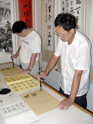 学书法不分早晚,不分身份地位,无非想与不想。六岁小孩能学,六十老人也能学。机关干部能学,农民兄弟也能学。练书法让人心平气和,人与人之间,“和”字最可贵。和张嵩山一同练书法的罗雪松,打趣说:“练书法让人安心静气,还能解决家庭矛盾。总比搓麻将好,说不定罗店村学书法的风气一上来,书法就成了罗店村的特色文化呢。”