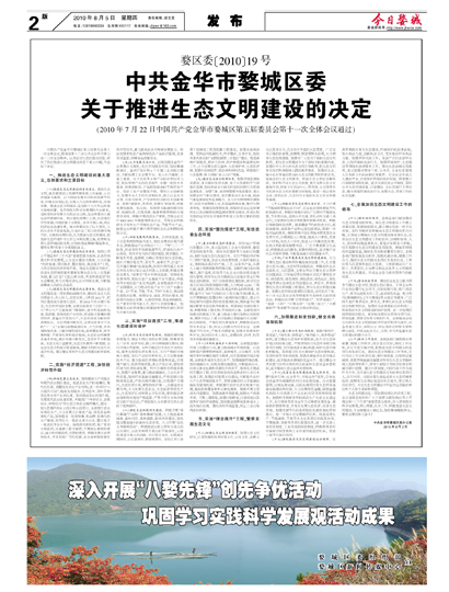 | 图片新闻 | 中共金华市婺城区委关于推进生态文明建设的决定 |