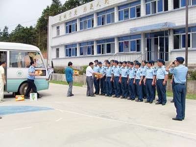 近日,双龙风景区管委会和婺城行政执法分局、双龙旅游发展公司一同组织人员前往金华北山,向常年驻守在海拔1000多米的雷达站官兵送去了70箱清凉饮品,表达对人民子弟兵的鱼水深情。通讯员 项毅 摄