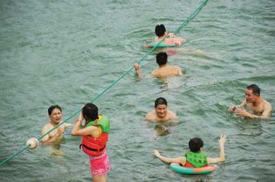连续的高温,使夜泳变成了一种时尚。每当傍晚来临,位于双龙风景区内的鹿湖水库水上乐园,就会聚满前来消暑的市民。据该乐园负责人吴利群介绍,每晚到这里来夜泳的人,一般不下400人。