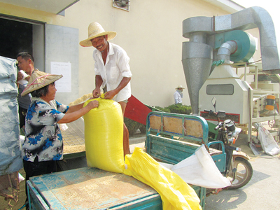 昨日,记者在白龙桥镇的粮食收储点看到了粮农们忙碌的身影,他们的脸上洋溢着丰收的喜悦。
