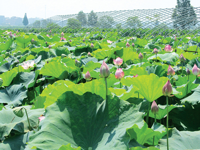 接天莲叶无穷碧,映日荷花别样红。昨日,记者在白龙桥周家村的基能农庄里看到,10多亩的荷花塘里,含苞待放的荷花美丽动人,一个个嫩绿的莲蓬在荷叶间摇摆。农庄里,工人们正忙着对莲蓬进行分类。农庄负责人张基能告诉记者,上市一个月来,已经采摘了上万只莲蓬,批发到福泰隆超市、白龙桥菜场等处,个大籽甜的莲蓬非常畅销。