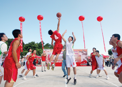 昨天是2010年金华市全民健身活动日,全市百镇千村首届农民篮球赛启动仪式在汤溪镇鸽坞塔少数民族村举行。市委宣传部副部长许加燮,市委统战部副部长、市民宗局局长张世元,市体育局副局长丁东军,婺城区委常委、宣传部长傅关福等参加了启动仪式。