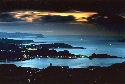 远处,渐渐融入黑暗中的山色深沉,海面吹来的风那样和缓,夜浓得像你看我的眼神,又轻得像你在我耳畔的呼吸,那样醉人,那样鲜润。
