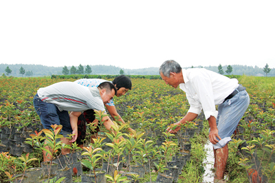2008年,邵亮回到老家白龙桥镇,成为了该镇的一名大学生“村官”。“在大学生‘村官’这支年轻队伍中,我算是‘老大哥’了。”今年32岁的邵亮感慨,但他始终坚持为民办好事、做实事的信念,扎根基层锻炼自己,增长才干,努力成为带头创业的能人。因为有过苗木生产管理经验,邵亮回到家乡后便利用自家土地种植了香樟、红叶石楠等苗木,增加了不少收入。“这两年苗木行情还不错。不过,种大树尽管赚得多,但投入较高,收益期长;而像红叶石楠之类的容器苗,市场需求多,成本较低,风险较小,比较适宜刚起步的农户。”通过走访联系村,邵亮心生想法:自己有种植经验,也有种植技术,何不利用自己的专业技能,帮助下杨村村民种植苗木、增加收入呢?
