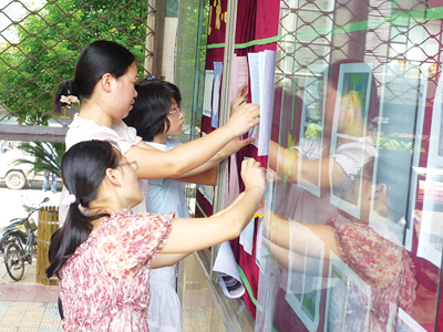 近日,育才小学的学生们与老师一起设计橱窗,努力为美丽校园增添一处亮丽风景。记者发现,橱窗里不仅有创意新奇的手抄报,还向师生们展示了该校的英语教学计划,该教学计划内容详细,把各个年级段的教学内容都做了详尽的介绍。