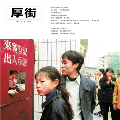 《厚街》是独立制片人周浩拍摄制作的第一部纪录片,片子开始就是中国沿海地区常见的一景:成群结队的青年男女横穿大街,他们衣衫不整,步履匆忙,肩上的行囊又脏又重……他们从中国内地贫穷的乡村辗转来到沿海经济发达地区,他们被叫做“农民工”。