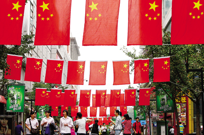 国庆将近,市区恒大百货、金茂大厦等一些大型商场都挂起了国旗,一面面五星红旗随风飘扬,仿佛骄傲地告诉人们,祖国的生日马上要到了,让我们一起庆祝祖国的生日吧。