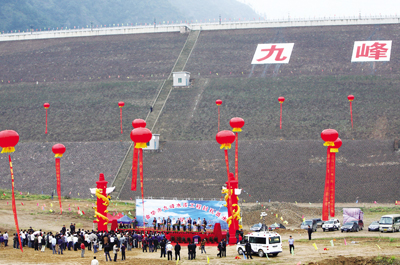 本报讯(记者 戴建东) 昨日,九峰水库大坝脚下人山人海,彩球飘扬,热闹非凡。随着市委书记徐止平宣布:九峰水库封孔蓄水正式开始,整个大坝工地顿时礼炮齐鸣,掌声不绝,这标志着历时8年之久的九峰水库建设终于迎来了具有里程碑的纪念日。