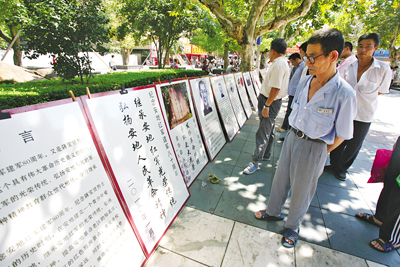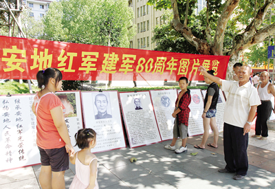 今年是安地红军建军80周年,又是安地红军总指挥蒋宝贤烈士就义80周年,为继承安地红军的光荣传统,弘扬安地人民的革命精神,9月22日,安地初中退休老师林岩旗带着他自己制作的展板,在人民广场文化路举办纪念安地红军建军80周年大型图片展,活动现场吸引了不少市民观看。记者 方晟 摄