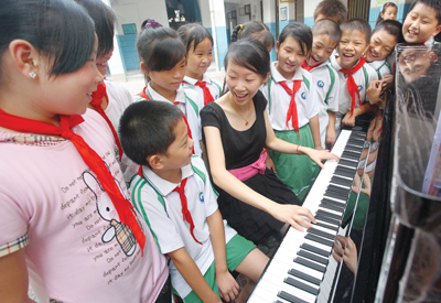 9月3日,婺城区第一民工子弟学校的校园内响起了悦耳的琴声。同学们围在一台钢琴边,兴奋地体验音乐带来的快乐。 原来,市区三丽琴行得知该校音乐教学器材资源不足的情况后,便向该校捐赠了一架钢琴,并成立了“三丽音乐教室”,将不定期派琴行老师前往进行免费辅导,更好地培养孩子们对音乐的兴趣,让高雅艺术陶冶孩子们的情操,让悦耳的琴声伴随孩子们快乐成长。 记者 方晟 摄
