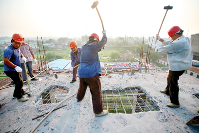 昨天上午,婺城区村(居)民违法建房专项整治工作领导小组、城西街道办事处、婺城执法分局、国土分局等有关部门联合对城西街道西郊社区陈某户违法建设的第四层以上部分的建筑进行强制拆除。