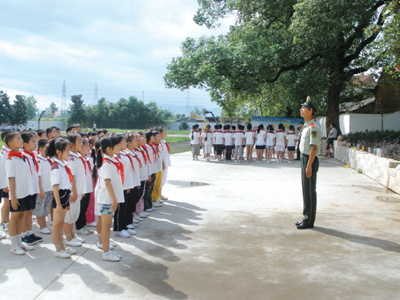 近日,蒋堂小学邀请武警四大队十中队的教官们为三至六年级的学生军训。
