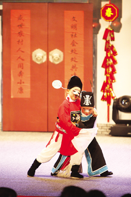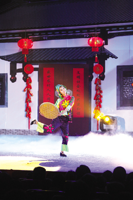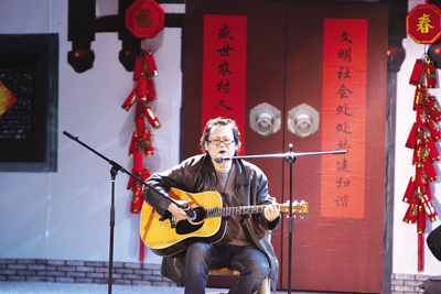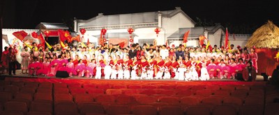 “那年你到山背,告诉她去去就回,她天天望着那条路,就看不见你回来……”一首地道的方言民谣,优美的旋律一下子将观众带到了2000年前古老的回忆。创作这首民谣的“汤溪外甥”张广天,是国内著名的音乐家、话剧导演,这次专程从北京赶回来参加婺城农民春晚。张广天告诉记者,“能在家乡的舞台上,为农民朋友们歌唱,一直是我的心愿。”“……唉嘿哎嘿哟,茶花山上唱山歌,阿妹越唱越开心哟。幸福生活唉,万万年哎。”一曲熟悉的金华山歌旋律,悠悠扬扬。55岁的农妇蔡玉辉唱起了山歌,一下子把晚会推向了高潮,台上台下齐声合唱,幸福的生活万年长。