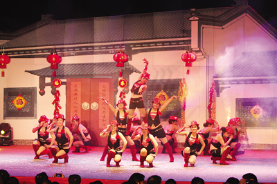 罗店村妇女了得,省级文化示范村——汤溪镇寺平村的姑娘们也不赖。瞧瞧,她们穿着绿衣裳,踮着脚尖款款走来。这个名叫《悠悠寺平》的舞蹈,是姑娘们自编自排的。优美的舞蹈,看得特意从城里赶来的金华市民庄小丽直入神:“这悠扬的古乐,这优美的舞蹈,寺平村岁月剥蚀的一砖一瓦好像就在眼前了。这些姑娘们太有才了!”
