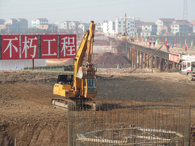 尽管气温较低,但杭长线的施工场地内却是一派热火朝天。1月12日,记者在婺城大桥上看到,由于近段时间金华江水位较低,中铁五局的施工人员正抢抓时机进行4*135连续梁主墩基础的施工。金华江一旁的白龙桥筱溪村里,施工人员正利用旋控钻忙着桩基础施工。工作人员介绍,只要地质条件允许,他们就会采用旋控钻施工,因为该设备施工没声音,不扰民。记者 月映红 傅伟炎