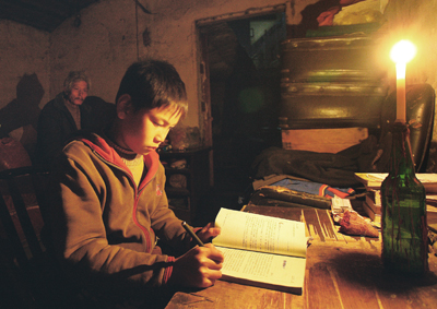 “今日复今日,今日何其少,今日又不为,此事何时了。”天暗下来了,12岁的龙龙自己趴在桌子上,就着蜡烛,写着《今日歌》,但没上过学的他完全不明白诗的内容和意义,逝去的十二年岁月,于他,也就这样日复一日地过去,他的事情何时能了?何时能跟其他孩子一样背着书包上学?他什么都不知道。