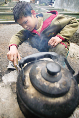 12岁,正是如花般的年龄,他应该与其他孩子一样,在父母跟前撒娇,到学校接受9年义务教育,与伙伴们一起度过无忧无虑的童年。然而,今年12岁的龙龙,却过着完全相反的生活,他与父亲一起,居住在城市边缘自己搭建的一个简易棚里,每天要拎起水桶灌满近20个水池的水,其他的时间,他就呆在房间看别人给他的书,此外,一个星期中的三天,他还要早上4点钟起床跟父亲一起卖金鱼。