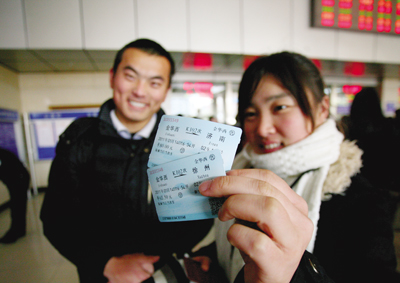 距离春运还有一段时间,金华火车西站迎来了返乡的小高潮,昨天上午,拎着大包小包的农民工已成为车站旅客的“主流”。在站售票大厅内,也排满了密密麻麻等候买票人,提前买到返乡车票的浙师大学生小刘兴奋地向记者展示自己的车票。车站工作人员提醒广大民工与学生最好提前购票,以免买不到票,耽误返乡过年。同时,也建议乘客买票时准备好零钱,加快买票速度。
